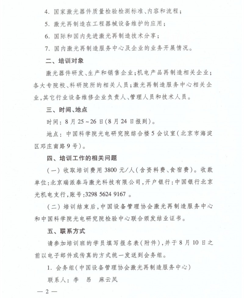 關(guān)于舉辦首屆激光再制造服務(wù)企業(yè)培訓(xùn)班的通知