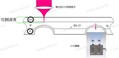 CCD通過鏤空的透明的工作旋轉(zhuǎn)臺,由下至上拍攝P面溝道獲取信息,進(jìn)行數(shù)據(jù)分析自動(dòng)進(jìn)行角度、坐標(biāo)位置補(bǔ)償,從而實(shí)現(xiàn)自動(dòng)切割。