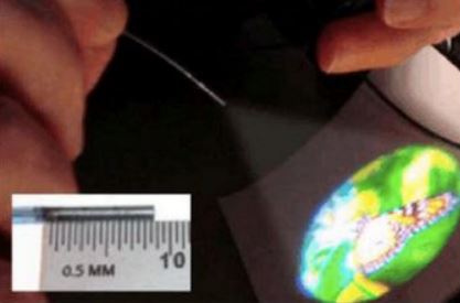 從激光器里導(dǎo)出的光線并不能直接成像,而是需要通過一種可以掃描的光纖才能實(shí)現(xiàn)。其原理與已經(jīng)被淘汰的CRT顯示器類似。CRT顯示器是利用陰極射線管發(fā)出的一束電子射線激發(fā)熒光屏來顯示圖像,顯像管里的磁場(chǎng)控制著掃描電子束的方向。