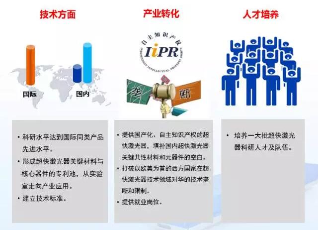 該項(xiàng)目完成后,將實(shí)現(xiàn)皮秒/飛秒激光器的自主研發(fā)和產(chǎn)業(yè)化,科研水平達(dá)到國際同類產(chǎn)品先進(jìn)水平,形成超快激光器關(guān)鍵材料與核心器件的專利池,讓產(chǎn)品從實(shí)驗(yàn)室走向產(chǎn)業(yè)應(yīng)用,建立技術(shù)標(biāo)準(zhǔn)。