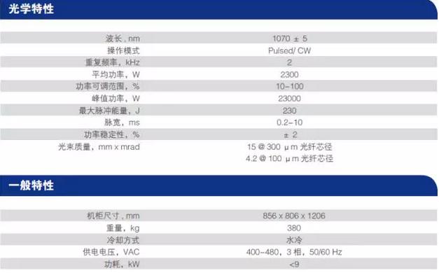 YLS-2300/23000-QCW是IPG Photonics近期推出的新產(chǎn)品。該機型可提供高達23 kW 的峰值功率,脈寬0.2-10 ms,最大脈沖能量230 J,調(diào)制頻率高達2 kHz,特別適合航空業(yè)的切割及鉆孔應用,可滿足沖擊鉆孔、套孔及精細切割等應用需求。