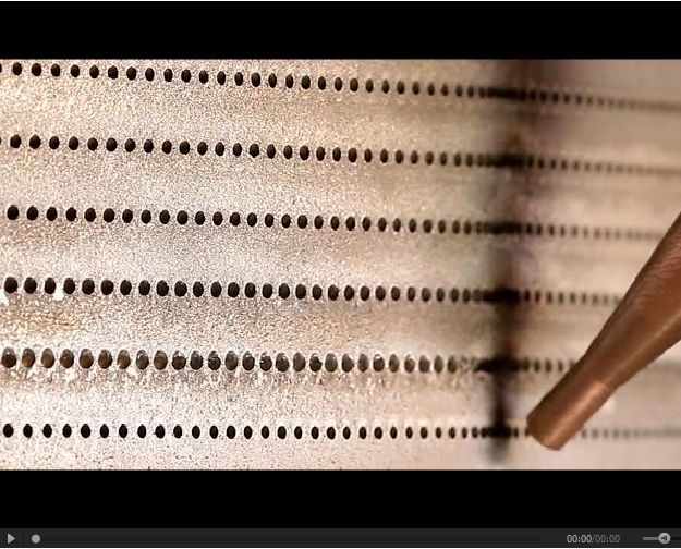 這種大孔徑孔在航空器件中很常見,比如渦輪導向葉片、風扇葉片、冷卻環(huán)、燃燒室等等。準連續(xù)激光器具有高峰值功率和高脈沖能量的獨特組合,可提供數(shù)焦耳脈沖能量,毫秒級脈沖周期,且能實現(xiàn)準連續(xù)模式到連續(xù)模式之間的切換,是大孔徑鉆孔應用領域的理想選擇。