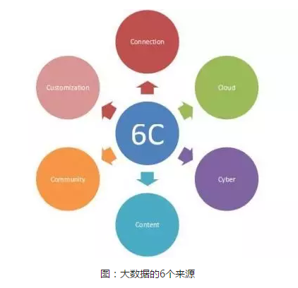 就制造產(chǎn)業(yè)來(lái)看,大數(shù)據(jù)主要來(lái)源于六個(gè)方面,被稱為“6C”:Connection(連接:傳感器和網(wǎng)絡(luò))、Cloud(云:任何時(shí)間及需求的數(shù)據(jù))、Cyber(虛擬網(wǎng)絡(luò):模式與記憶)、Content(內(nèi)容:相關(guān)性和含義)、Community(社群:分享和交際)、Customization(客制化:個(gè)性化服務(wù)與價(jià)值)。