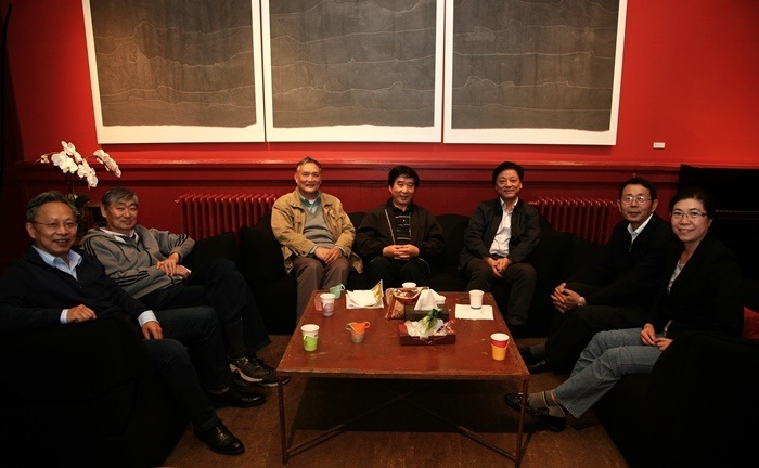 圖2、學(xué)會領(lǐng)導(dǎo)與來賓親切交談。左起:顧波、梁志遠、郭少陵、孫忠發(fā)、朱曉、 閆大鵬、桑梅。