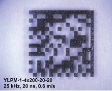 YLP這一大系列產(chǎn)品中有多種激光器都可以打出這種類型的標記,激光器的選擇基于是否需要一個靈活可變的脈沖寬度。為了得到效果最好的標記,可以使用YLPM-1-4x200-20-20這款脈沖長度可調(diào)節(jié)激光器。