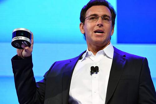 福特汽車CEO馬克·菲爾茨在2016年CES上手持Velodyne新款固態(tài)混合超級冰球,2017年Velodyne又會有什么新消息呢?