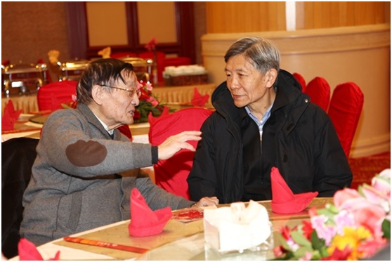 圖12、簡水生院士(左)與李天初院士(右)在團(tuán)拜會上親切交談。