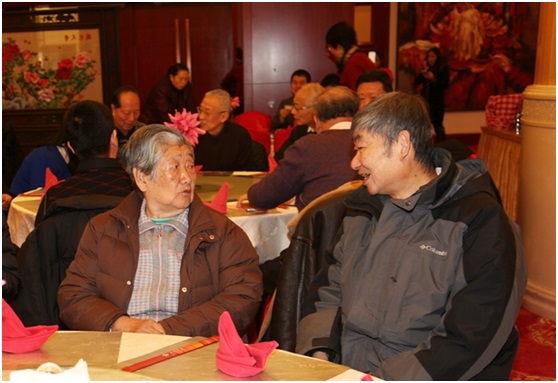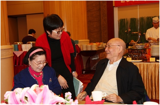 圖11、金國藩院士(中)和夫人段老師(左),與姚駿恩院士(右)在團(tuán)拜會上。