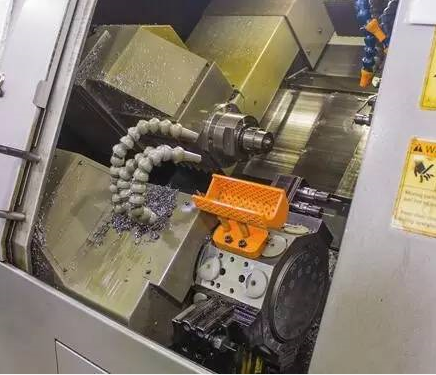 這臺(tái)Citizen車床內(nèi)部的橙色零件接收器最初被打印成固態(tài),在后來鉆了若干排水孔,現(xiàn)在將這些排水孔作為設(shè)計(jì)的一部分進(jìn)行了打印,消除了額外的步驟
