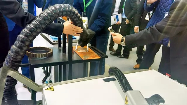 (圖為:激光清洗展示,吸引眾多參展者駐足咨詢)