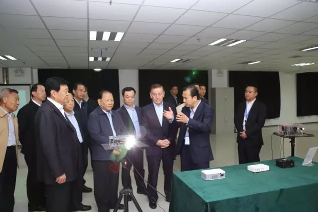 2017413日下午,全國人大常委會(huì)副委員長艾力更·依明巴海率領(lǐng)全國人大華僑委座談會(huì)代表蒞臨炬光科技指導(dǎo)工作。艾力更·依明巴海副委員長一行在炬光科技董事長兼總經(jīng)理劉興勝博士、副總經(jīng)理田野、副總經(jīng)理卜遠(yuǎn)明等陪同下,依次參觀了公司產(chǎn)品展廳、激光應(yīng)用實(shí)驗(yàn)室、研發(fā)生產(chǎn)車間。