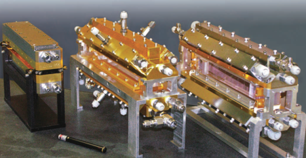 板條激光器和薄片激光器的一點點差別在于,板條多為側(cè)面泵浦或角泵浦。優(yōu)點是工藝成熟,體積小,級聯(lián)容易,缺點是光束整形難度高,比較難以得到較高品質(zhì)因子的激光放大。板條也可達(dá)到萬瓦級,是目前和化學(xué)激光器一樣,是激光武器的主流。
