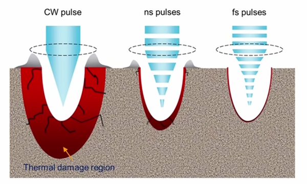 從工業(yè)應(yīng)用角度看,主要是因為脈寬越短,加工時間內(nèi)的熱擴(kuò)散越小,加工精度高,不容易傷及無辜。