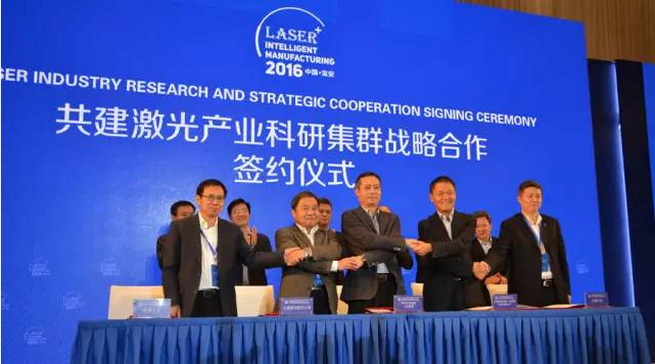 2016年12月10日,北京航空航天大學(xué)副校長(zhǎng)房建成、湖南大學(xué)副校長(zhǎng)劉金水、吉林大學(xué)副校長(zhǎng)孫友宏、大族集團(tuán)董事長(zhǎng)高云峰與寶安區(qū)區(qū)長(zhǎng)姚任共同在激光產(chǎn)業(yè)科研集群戰(zhàn)略合作協(xié)議上簽字,將加強(qiáng)政產(chǎn)學(xué)研用合作,共建千億級(jí)激光智能制造產(chǎn)業(yè)集群!