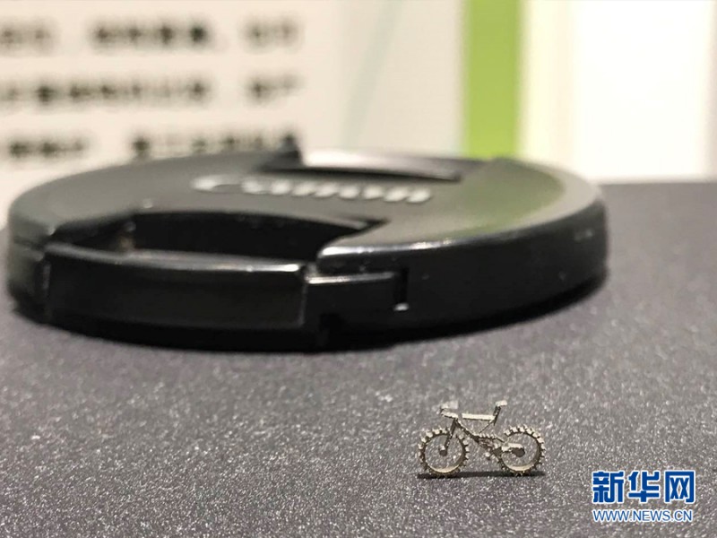 激光打印出來(lái)的微型自行車模型。新華網(wǎng)記者 鄭磊 攝