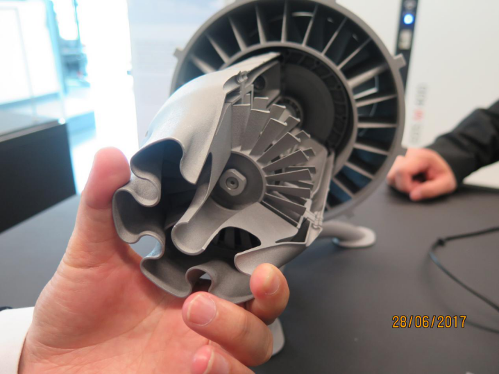 當天下午,協(xié)會代表們來到了著名的3D打印公司EOS參觀,Lenz先生給來賓們進行了詳細的公司介紹。據(jù)了解,EOS目前擁有超過1000名員工,因為業(yè)績前景較好,員工數(shù)量上保持著每月20多名員工增長速度。該公司在上一個財年業(yè)績超過3億歐元。代表們對很多3D打印的工藝與具體材料應用提出了許多問題,都得到確切回答。在參觀該公司展示廳時,一臺新型3D打印機十分惹人注意,據(jù)介紹,這臺機器擁有四臺激光器,可同時以四束激光打印產(chǎn)品,速度是單束激光的4倍。參觀完該公司,代表們對3D打印技術的應用空間與工藝有了更多的了解,這是一次獲益良多的學習之旅。