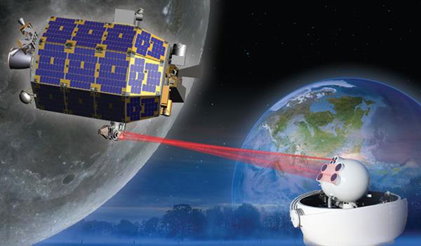 激光望遠(yuǎn)鏡系統(tǒng)的原理如下:四架地面望遠(yuǎn)鏡把經(jīng)過編碼的紅外脈沖發(fā)射到太空中,然后被安裝在繞月球運(yùn)轉(zhuǎn)的衛(wèi)星上的望遠(yuǎn)鏡捕獲。地球大氣會(huì)輕微地干擾脈沖信號(hào),這就是為什么需要發(fā)射四個(gè)同步的脈沖信號(hào),這能使連接保持穩(wěn)定和完整。隨后,衛(wèi)星上的望遠(yuǎn)鏡把紅外光束聚焦到光纖上,光纖中的光檢器把光的閃爍解釋為電脈沖,然后再將其轉(zhuǎn)換成數(shù)據(jù)資料。