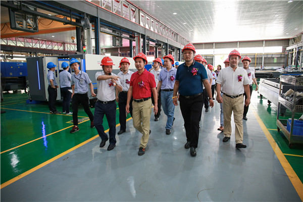 大族激光智能裝備集團(tuán)陳焱總經(jīng)理、鑫國(guó)邦物流有限公司張邵軍總經(jīng)理共同為新車(chē)間揭牌。大族激光智能裝備集團(tuán)陳總介紹了車(chē)間揭牌背景、意義,大族激光智能裝備集團(tuán)2017年上半年業(yè)績(jī)及對(duì)未來(lái)的展望。首先,新的標(biāo)準(zhǔn)產(chǎn)品生產(chǎn)車(chē)間在鑫國(guó)邦物流有限公司張總的大力支持與協(xié)助下,生產(chǎn)制造總部的共同努下,兩個(gè)月內(nèi)即迅速投入生產(chǎn),極大地緩解了今年高速增長(zhǎng)的業(yè)績(jī)帶來(lái)的生產(chǎn)壓力。陳總特別介紹,新車(chē)間總占地面積18000平方米,擁有100個(gè)生產(chǎn)工位,已全面實(shí)現(xiàn)標(biāo)準(zhǔn)化、模塊化制造。大族激光智能裝備集團(tuán)要把這個(gè)18000平方米車(chē)間建成世界最頂級(jí)、最高效、最能體現(xiàn)激光智能裝備生產(chǎn)價(jià)值的的車(chē)間,向世界展示大族激光的制造實(shí)力。