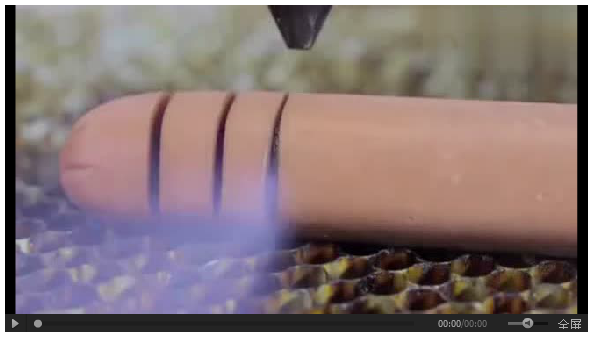 在人們的固有印象中,激光切割一般應(yīng)用于尖端工業(yè)技術(shù)上。但一國(guó)外網(wǎng)友腦洞大開(kāi),用激光切割火腿腸,請(qǐng)看視頻: