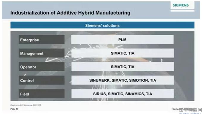 Siemens PLM Software為增材制造開發(fā)了一個(gè)端到端設(shè)計(jì),涵蓋從概念、設(shè)計(jì)、制造到車間操作及自動(dòng)化的所有過程,并在CAD文檔中嵌入了安全的“數(shù)字權(quán)利”機(jī)制。用Teamcenter來管理和訪問打印機(jī)文檔,將 Teamcenter作為所有設(shè)計(jì)和過程數(shù)據(jù)的核心協(xié)同知識庫,所有產(chǎn)品以及過程知識的唯一來源。