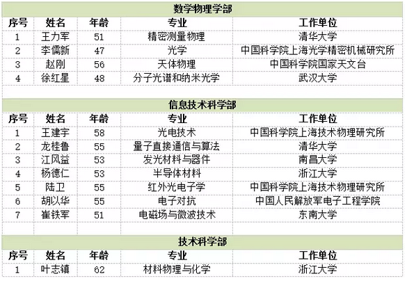 中科院院士光學(xué)篇候選人