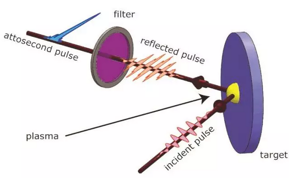 獲得持續(xù)時間更短的脈沖光源用于微觀世界超快過程的診斷與控制,一直是人們追求的目標(biāo)。自鎖模技術(shù)可以產(chǎn)生飛秒激光脈沖,使得人們可以記錄下化學(xué)反應(yīng)過程中原子運(yùn)動的“慢動作”,在原子的層面研究化學(xué)鍵的斷裂與形成過程。如果想更進(jìn)一步深入原子內(nèi)部捕捉電子的運(yùn)動過程,則需要時間尺度在阿秒(10-18 s)量級的“閃光燈”。由于光脈沖寬度不可能小于一個光振蕩周期,產(chǎn)生阿秒脈沖必須使用波長比可見光更短的極紫外光甚至x射線才有可能。
