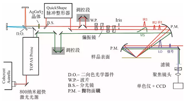 圖2 實驗系統(tǒng)的配置既支持 2D SFG 也支持 2D IR。