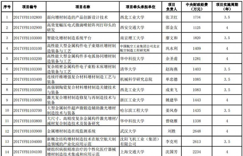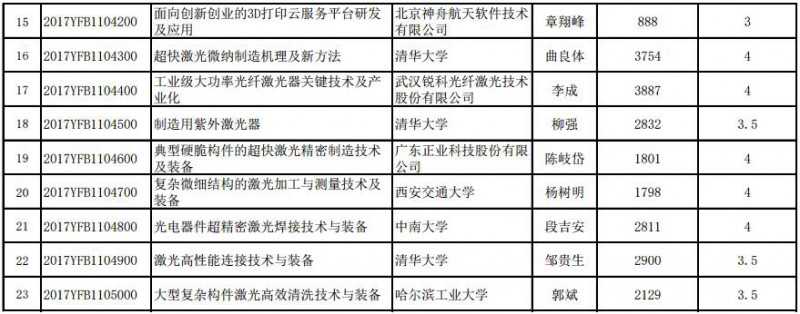 關(guān)于國家重點(diǎn)研發(fā)計(jì)劃“增材制造與激光制造”等9個(gè)重點(diǎn)專項(xiàng)2017年度項(xiàng)目安排進(jìn)行公示的通知