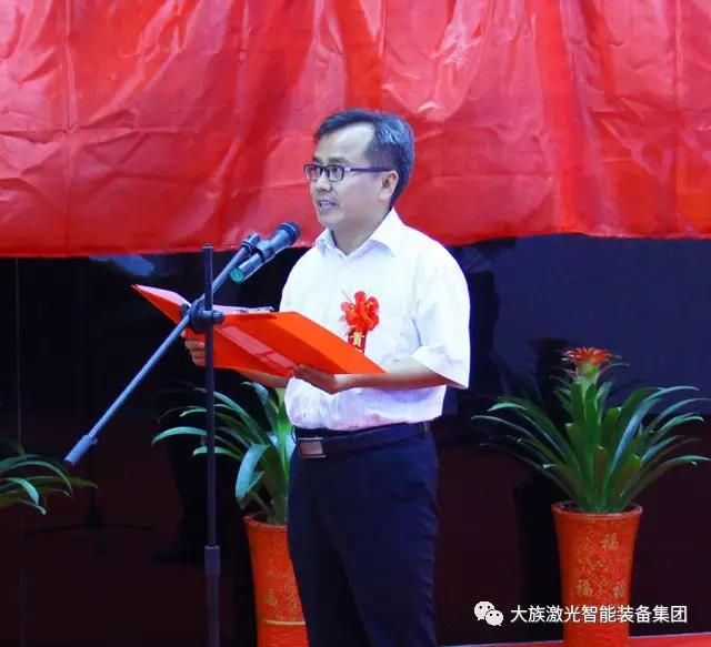 長(zhǎng)沙市雨花經(jīng)開(kāi)區(qū)郭四軍書(shū)記首先致辭。郭書(shū)記對(duì)各位嘉賓的到來(lái)表示最熱烈的歡迎,向大族激光表示熱烈的祝賀,高度贊揚(yáng)大族激光二十年所取得的成就,熱忱展望未來(lái)雙方合作愿景,并對(duì)智能裝備集團(tuán)陳焱總經(jīng)理表示由衷欽佩與贊賞,對(duì)大族激光未來(lái)發(fā)展致以美好祝福。