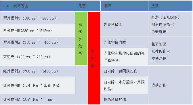 慢性危害:重復(fù)或慢性激光照射,比如在光譜的紫外線區(qū)域的光學(xué)輻射會導(dǎo)致長期的激光危害效應(yīng),比如加速皮膚老化和皮膚癌。