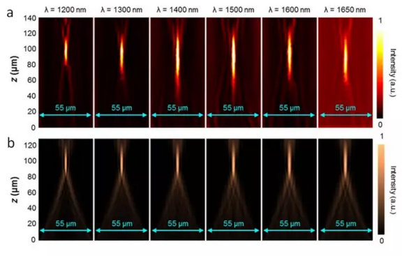 目前,人們已經展示了利用超構表面研制的平板超構透鏡(百納米量級厚度)可以媲美傳統(tǒng)光學顯微鏡鏡頭的成像效果。不過,此類新原理設計真正走向應用還面臨幾項重要挑戰(zhàn),材料色散及衍射效應導致的色差就是其中之一。