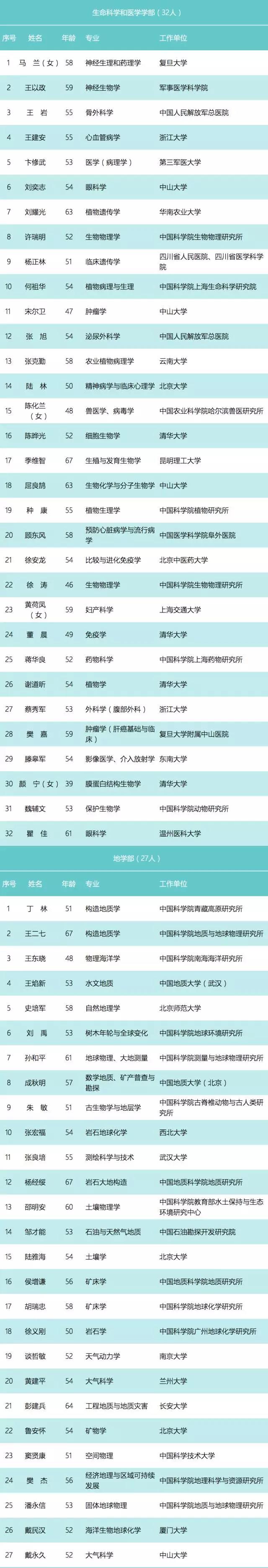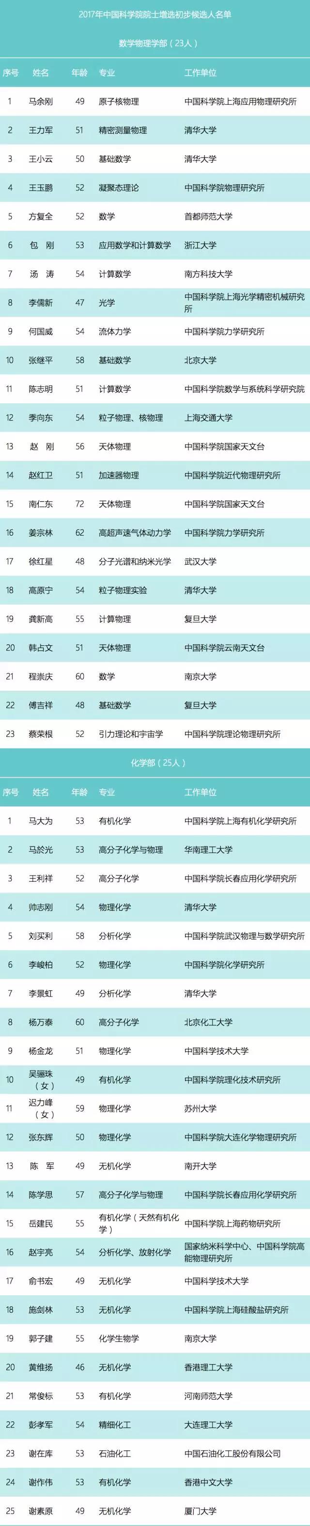 中國科學院各學部初步候選人分布如下:數(shù)學物理學部23人、化學部25人、生命科學和醫(yī)學學部32人、地學部27人、信息技術科學部20人、技術科學部30人。