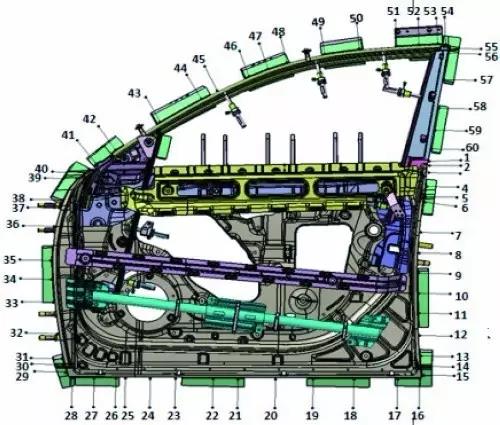 圖1   車門檢測(cè)點(diǎn),注:1~60為車門檢測(cè)點(diǎn)。