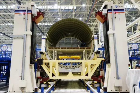 2014年5月,C919大型客機(jī)前機(jī)身大部段順利下線,該部段包括前段客艙、前貨艙和再循環(huán)風(fēng)扇艙,包含1600多項(xiàng)零件,涉及近2000項(xiàng)工裝。