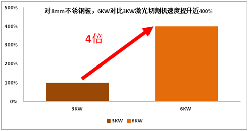 當(dāng)然上面情況只是其中一種,但是萬瓦級(jí)光纖激光切割機(jī)的出現(xiàn),為鈑金加工提供了更優(yōu)化方案。就像奔騰吳總說的“高功率激光加工設(shè)備,將為鈑金加工客戶帶來前所未有的價(jià)值倍增。”有數(shù)據(jù)表明,在8mm不銹鋼方面,6KW對比3KW激光切割機(jī)速度提升近400%。而在20mm厚不銹鋼方面,12KW對比10KW速度提升了114%。