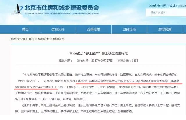 北京要求,城六區(qū)及10個新城區(qū)的各類道路工程、水利工程、土石方作業(yè)和房屋拆遷施工等全面停工,停工4個月(2017年11月15日至2018年3月15日)。對拒不停工項目、揚塵不達標等項目,將暫停相關(guān)單位的投標資格。