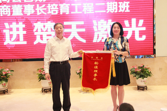 根據(jù)華商會品牌活動的安排,本次會上還舉行輪值理事長授旗活動。理事長輪值活動,由執(zhí)行理事長、副理事長擔(dān)任輪值理事長,輪流策劃和組織主題活動,發(fā)揮華商會領(lǐng)導(dǎo)班子的標(biāo)桿、示范和引領(lǐng)作用,分享成功創(chuàng)業(yè)經(jīng)驗(yàn),共享社會資源,加強(qiáng)交流合作,促進(jìn)會員企業(yè)抱團(tuán)發(fā)展。武漢鴻華服飾有限公司董事長范紅華擔(dān)任了第一位輪值理事長,孫文理事長為她授旗。