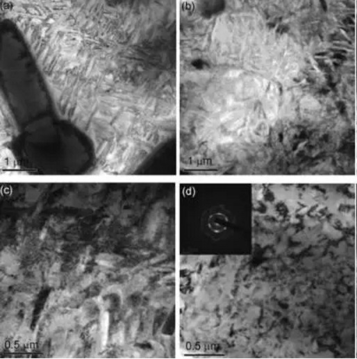 (a) 基體; (b) 高密度位錯(cuò); (c) 位錯(cuò)胞; (d) 表層納米晶