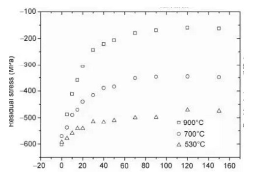 一是高溫部件的強(qiáng)化問(wèn)題。在高溫或者極端環(huán)境中,強(qiáng)化后產(chǎn)生的殘余壓應(yīng)力高溫環(huán)境下將會(huì)大部分釋放,強(qiáng)化效果顯著降低;