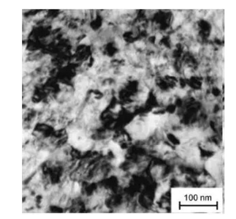 沖擊波持續(xù)作用下,位錯(cuò)運(yùn)動(dòng)進(jìn)而形成納米晶。在這個(gè)過(guò)程中,有可能發(fā)生動(dòng)態(tài)再結(jié)晶。激光沖擊形成的塑性變形應(yīng)變率非常高,而高應(yīng)變率變形過(guò)程往往是絕熱過(guò)程,且變形做功轉(zhuǎn)化為熱量,引起材料溫度升高。