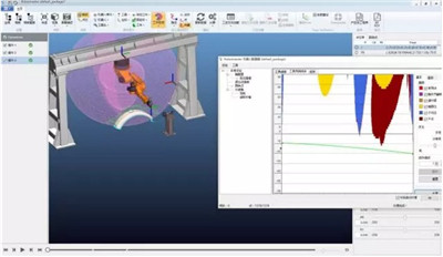 但示教編程對于復雜圖形往往需要數(shù)小時甚至整日編好程序才可投入使用。隨著軟件技術(shù)的發(fā)展,我們已可以選配各類仿真軟件,robotmaster、robotstudio等進行機器人的離線編程工作,可大大減輕編程的工作量,并且可以在機器人工作時制作仿真視頻給客戶參閱。下圖為我司在客戶現(xiàn)場的RobotMaster離線編程軟件界面: