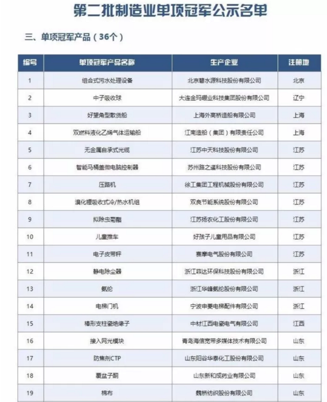 為引導(dǎo)制造業(yè)企業(yè)專注創(chuàng)新和質(zhì)量提升,在更多細(xì)分產(chǎn)品領(lǐng)域形成全球市場(chǎng)、技術(shù)等方面領(lǐng)先的單項(xiàng)冠軍地位,提升我國制造業(yè)國際競(jìng)爭力,促進(jìn)我國產(chǎn)業(yè)整體邁向全球價(jià)值鏈中高端,根據(jù)《關(guān)于印發(fā)<制造業(yè)單項(xiàng)冠軍企業(yè)培育提升專項(xiàng)行動(dòng)實(shí)施方案>的通知》和《關(guān)于組織推薦第二批制造業(yè)單項(xiàng)冠軍企業(yè)和單項(xiàng)冠軍產(chǎn)品的通知》,經(jīng)企業(yè)自愿申報(bào),各地工業(yè)和信息化主管部門、有關(guān)行業(yè)協(xié)會(huì)、中央企業(yè)推薦,專家論證,工業(yè)和信息化部將擬公布的第二批制造業(yè)單項(xiàng)冠軍企業(yè)和單項(xiàng)冠軍產(chǎn)品名單予以公示。公示時(shí)間:2017年11月27日-2017年12月5日。