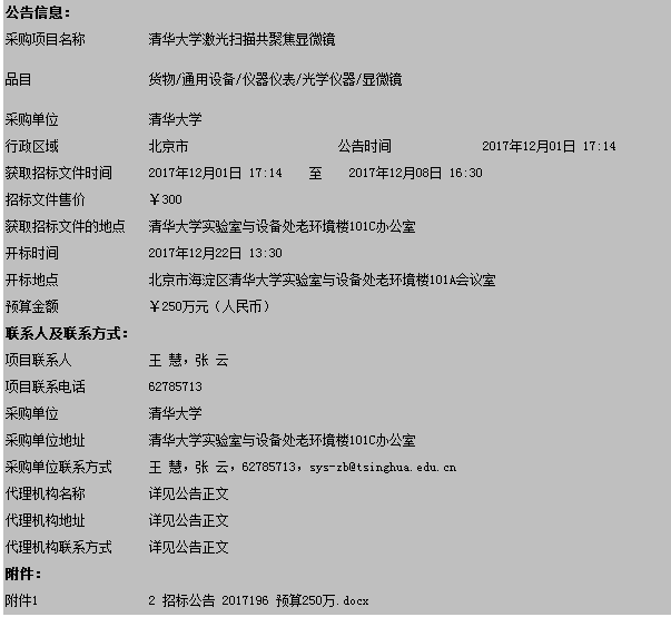 清華大學激光掃描共聚焦顯微鏡公開招標公告