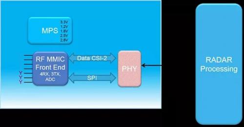這一接口協(xié)議如今已經(jīng)被商業(yè)化,如用在視頻環(huán)視系統(tǒng)中。這種架構(gòu)與圖8中的原始數(shù)據(jù)雷達傳感器配合地非常好:信號接口有4條數(shù)據(jù)線,可以接入4個信號接收器,并配有12位的雷達單塊微波集成電路,通信接口的帶寬也能達到1到1.5Gbit每秒。