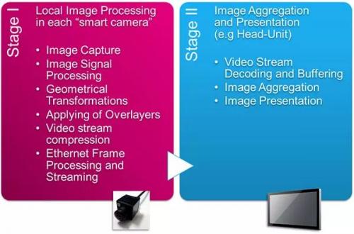非中央集中化的方式完全去掉了攝像頭控制模塊(ECU),只留下了智能攝像頭和車機主機。說得更直白一點,這一方法在攝像頭和中央攝像頭控制模塊中各有一個處理步驟,圖4列出了相關(guān)細節(jié)。