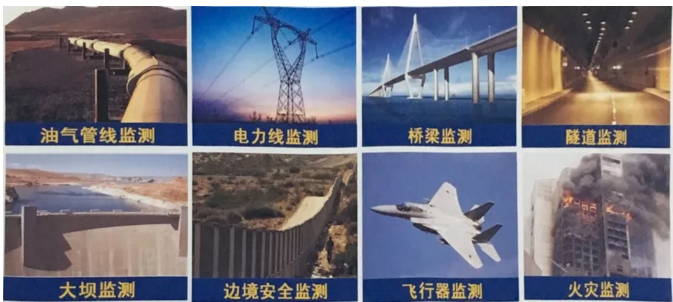 分布式光纖傳感可以實現(xiàn)在空間上的連續(xù)測量,具有測量距離長、定位精度高等特點,可測量溫度、應(yīng)變和振動等,應(yīng)用監(jiān)測領(lǐng)域包括:油氣管道,高壓電纜光纜,地質(zhì)災(zāi)害(山體滑坡、泥石流等),橋梁、大壩和隧道等大型建筑物以及火災(zāi)報警等。