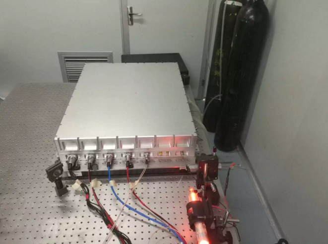 整個裝置采用全光纖前端+高增益預(yù)放+四級釹玻璃主放的MOPA光學結(jié)構(gòu);采用以桁架立面為基礎(chǔ)、以側(cè)懸臂支撐夾持為主的機械結(jié)構(gòu),是目前國內(nèi)高校中唯一一套采用“神光-III”結(jié)構(gòu)構(gòu)架,實現(xiàn)光路高度集成化的激光裝置。