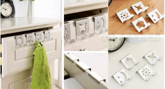 利用激光切割機(jī)在不銹鋼、碳鋼等金屬板材上切割鏤空出掛鉤形狀,花形由電腦程序控制,一次成型,經(jīng)折彎和拋光或加以烤漆可直接使用,無(wú)需焊接,免打釘免鉆孔。當(dāng)然,也可以將激光切割后的門(mén)上掛鉤裝訂上木板等修飾物,變換掛飾風(fēng)格,達(dá)到更好的裝飾效果。