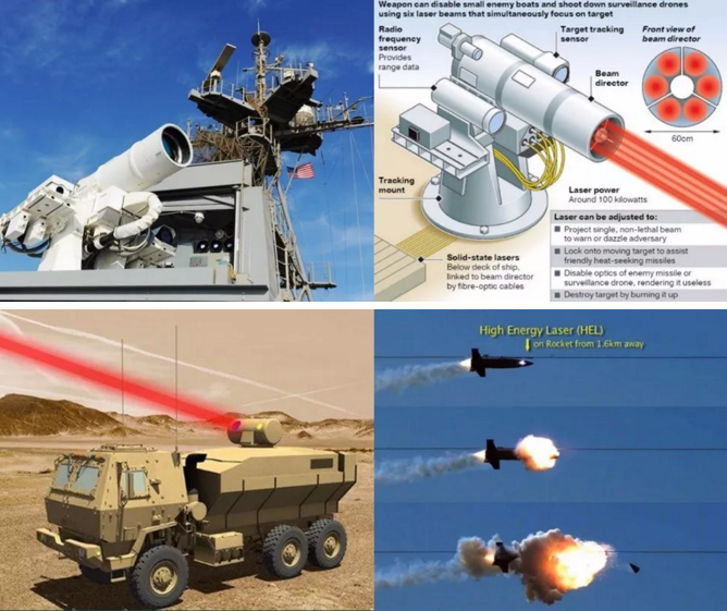 圖  LAWs激光系統(tǒng)和洛克馬丁公司的30kW激光器擊打無(wú)人機(jī)實(shí)驗(yàn)