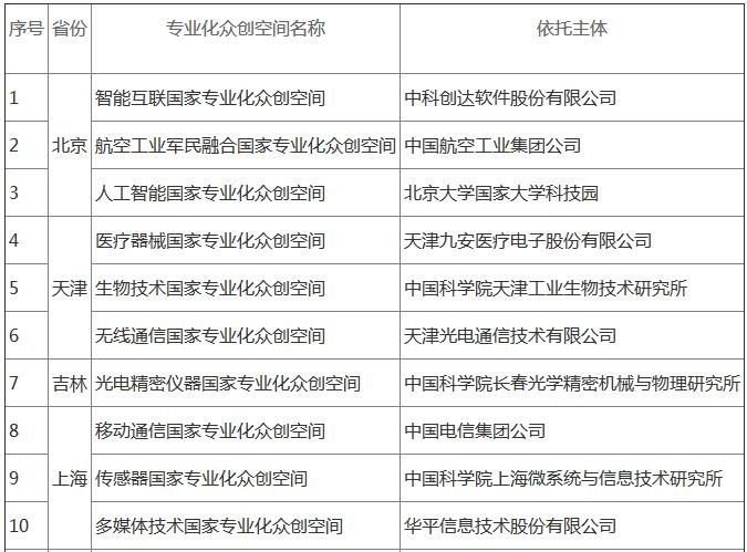 第二批國家專業(yè)化眾創(chuàng)空間示范名單